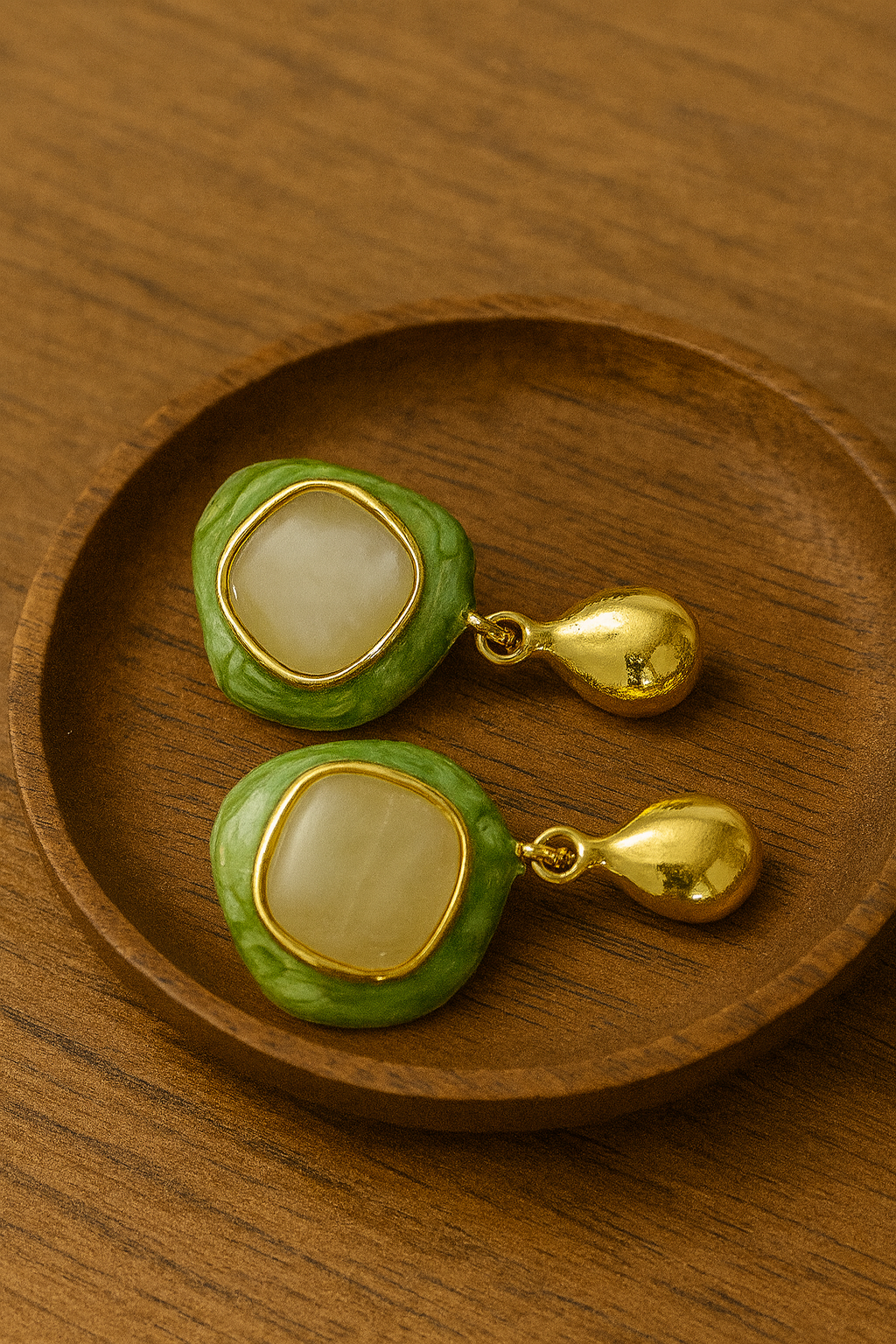 Stylish geometric green enamel design with golden accents