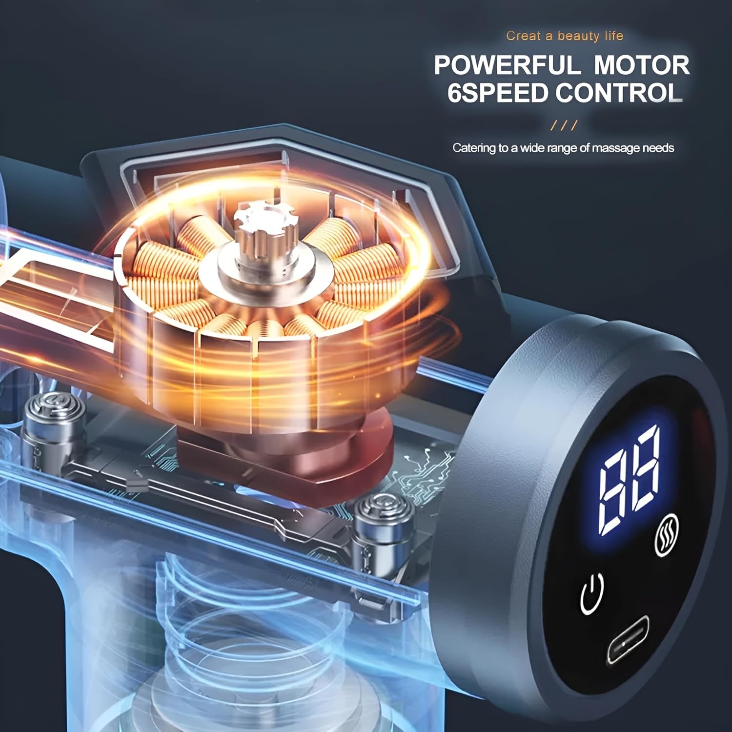 Model: Portable Massage Gun | 6 Heads | 6 Speed Levels | 1800mAh Battery